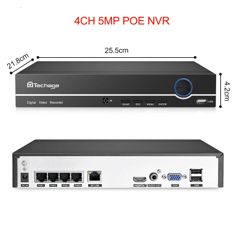 Product Name: Techage H.265 4CH 8CH 4MP 5MP 1080P POE NVR аудио выход безопасности видеонаблюдения сетевой видеорегистратор до 16CH для POE IP камеры